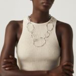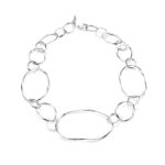 Collezione Brooklyn – Il gioco di anelli pressofusi in argento che si rincorrono. Le diverse forme e dimensioni delle maglie conferiscono al gioiello una leggerezza e un volume quasi eterei. Una bellezza fresca e impalpabile.